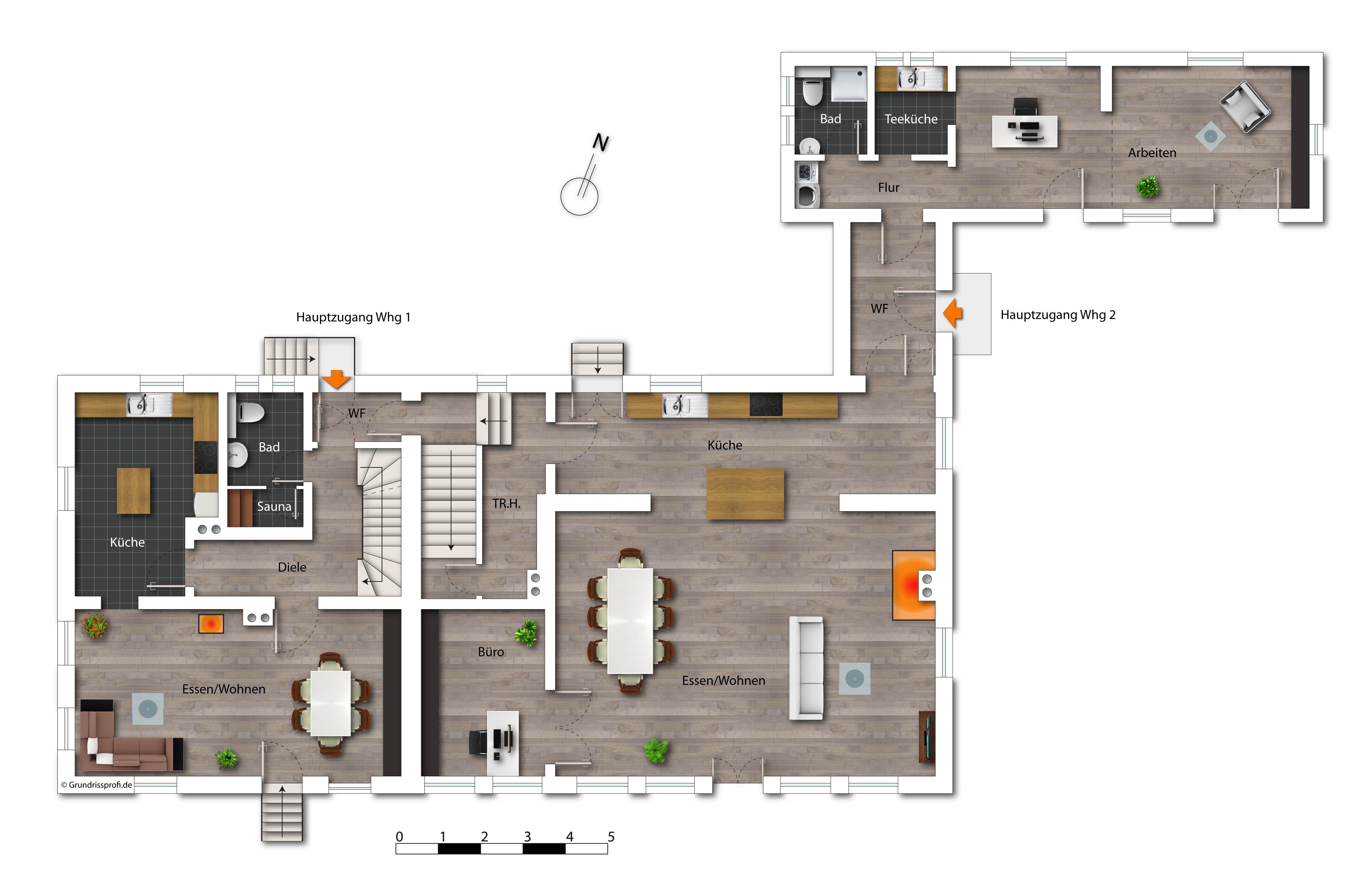 Zudem befindet sich hier ein weiterer Eingangsbereich: der Praxis-/Arbeitsbereich.