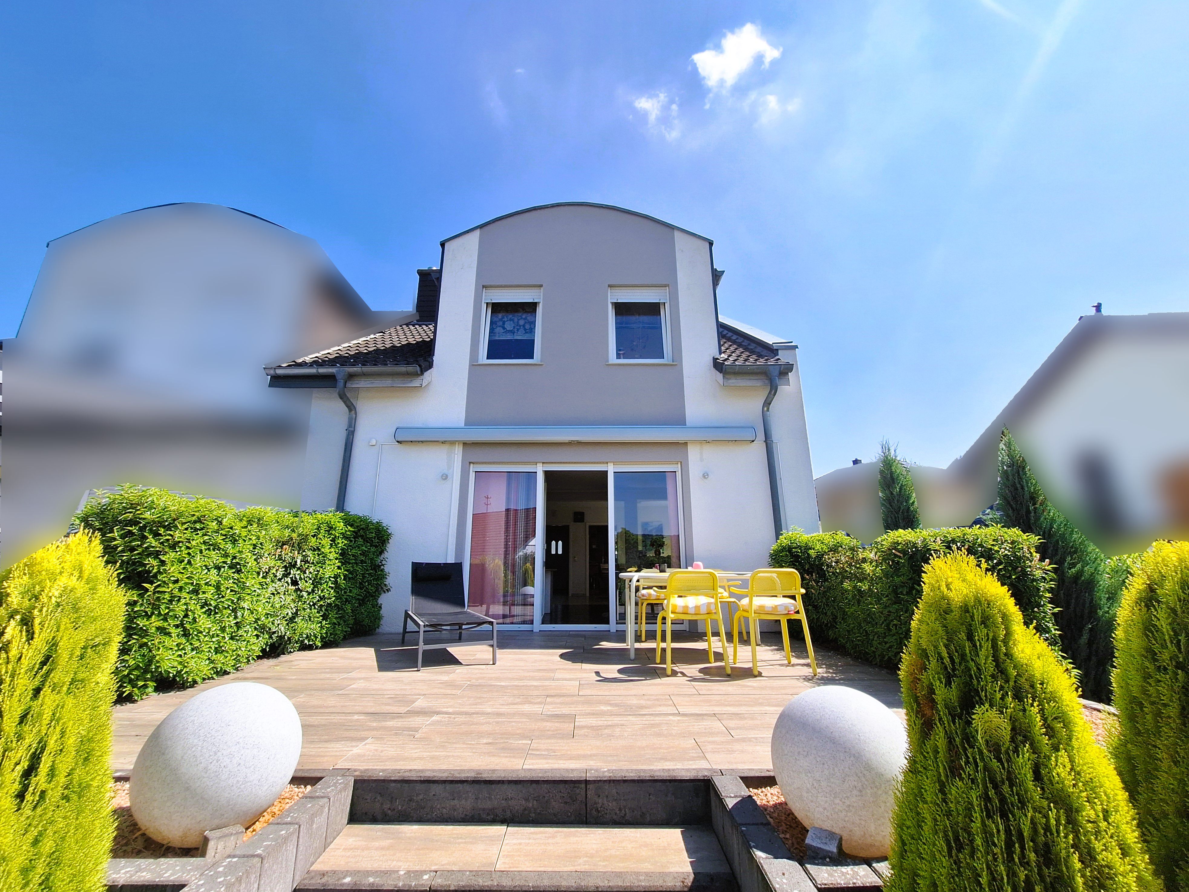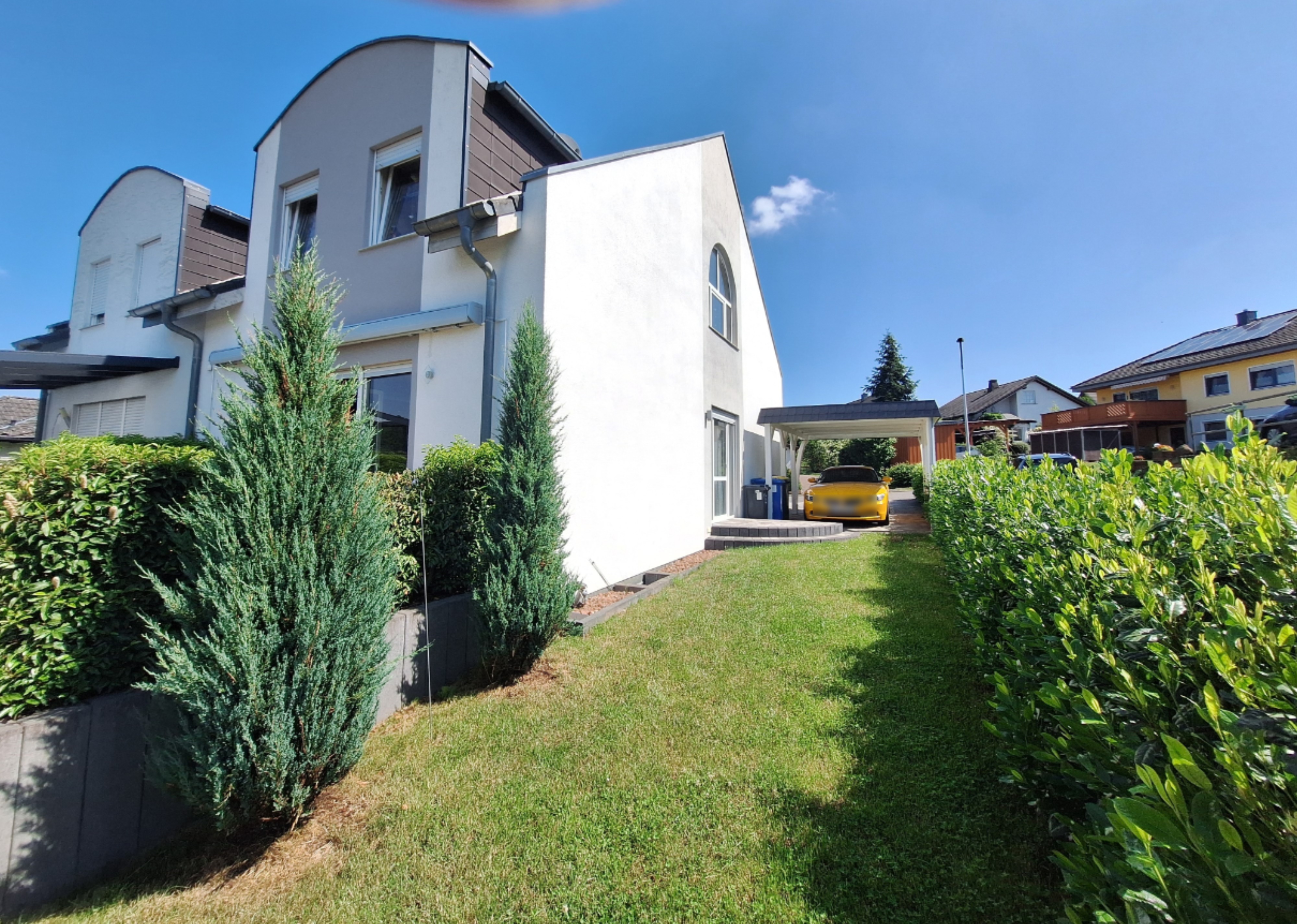 - Moderne Doppelhaushälfte mit Satteldach und Tonnengaube, Carport, Garten und Fernblick