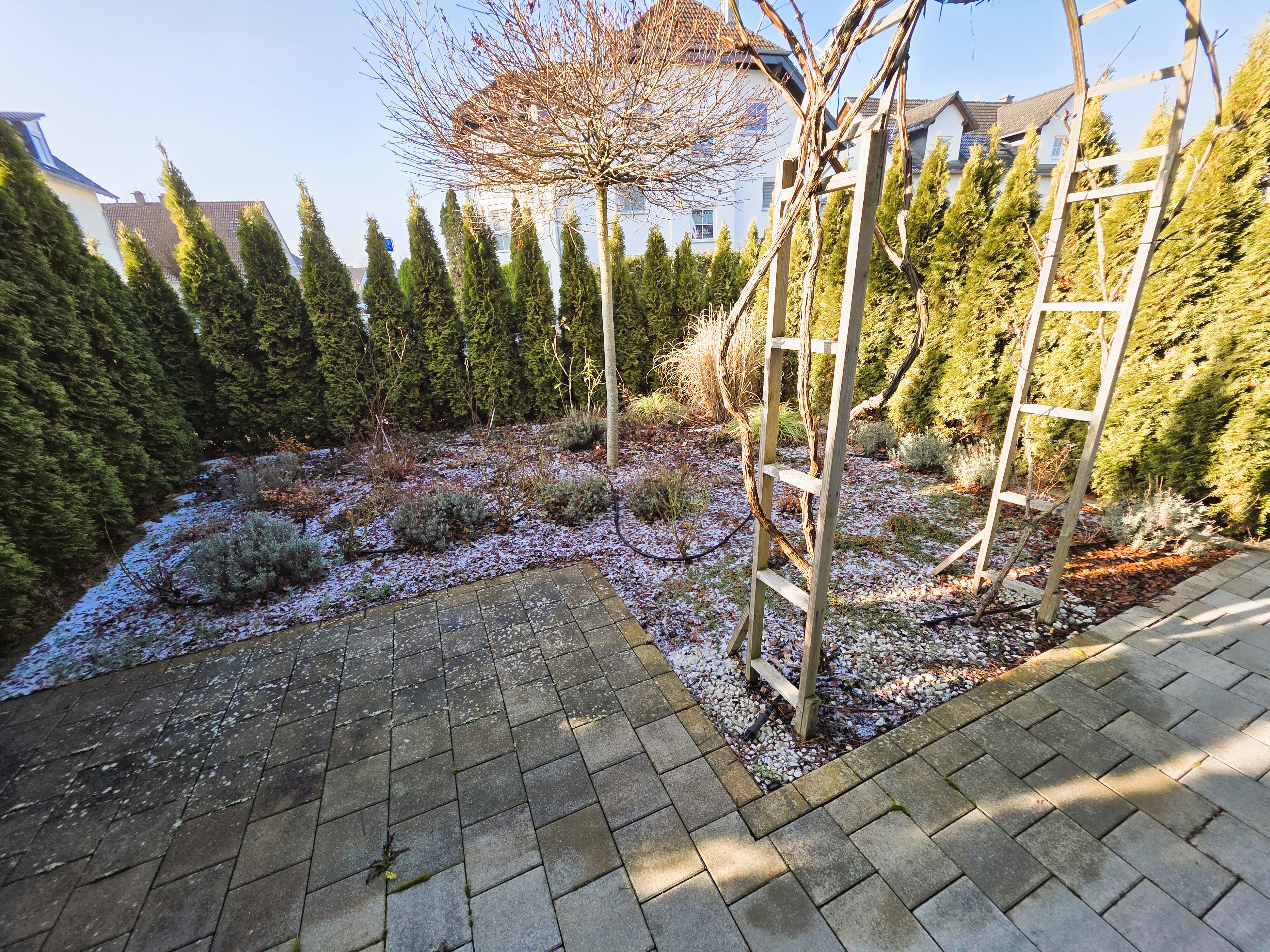 - je eine Terrasse im vorderen und hinteren Gartenbereich