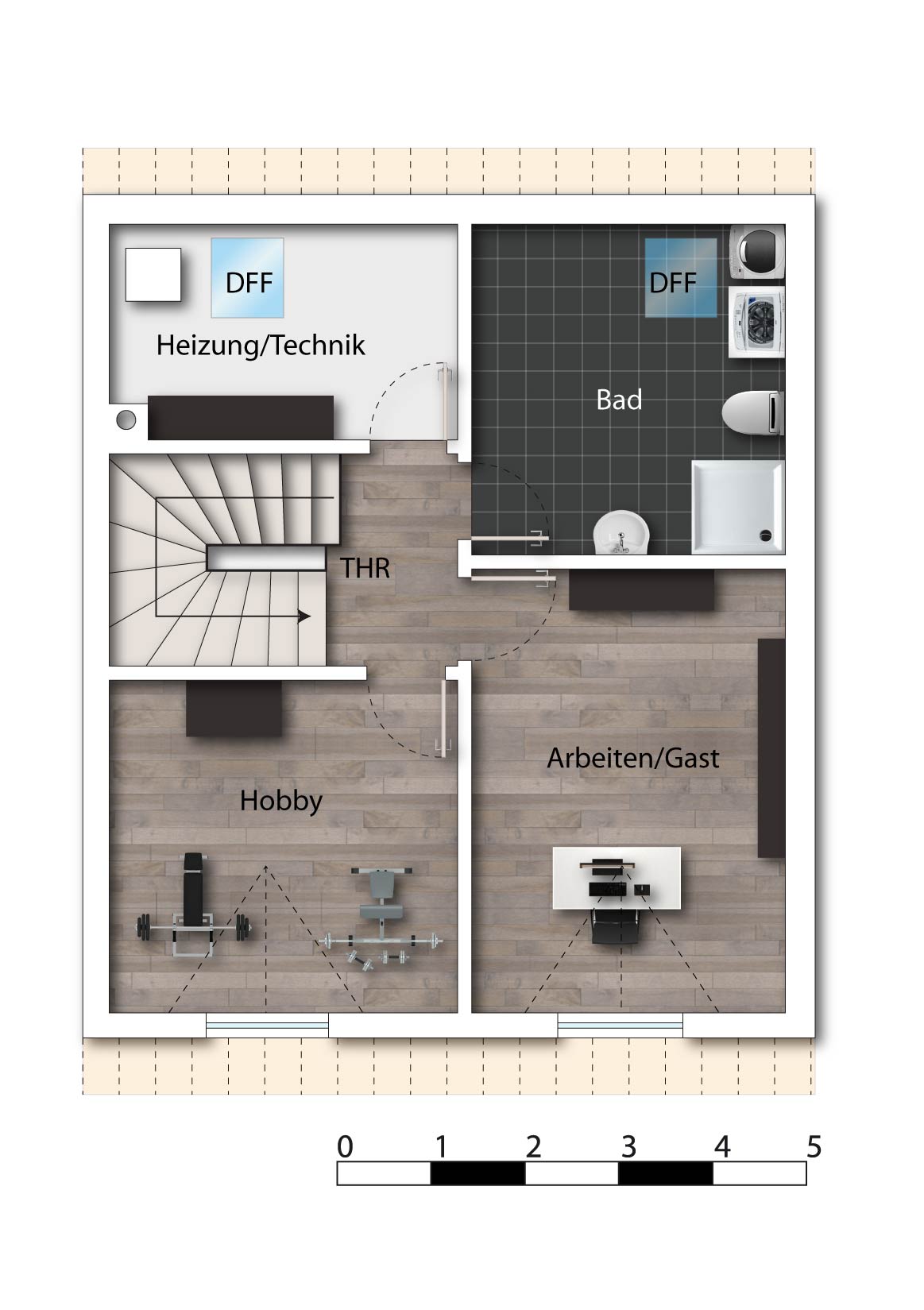 Alle Räume sind schön geschnitten, der Grundriss gut durchdacht und für neue Eigentümer mit unterschiedlichen Bedürfnissen geeignet, da sich auch aufgrund der diversen Ebenen viele Wünsche erfüllen lassen.