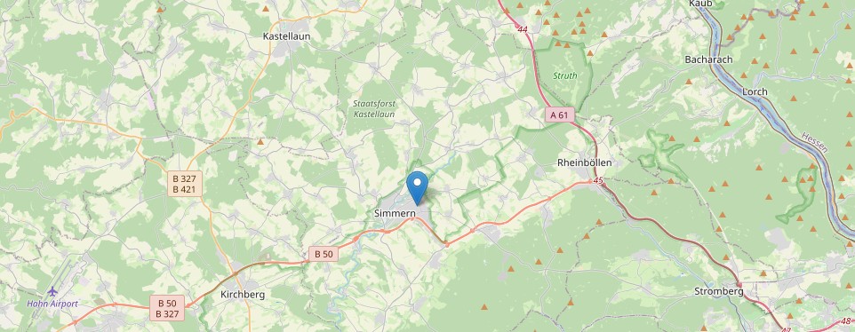 Simmern/Hunsrück ist mit knapp 8.035 Einwohnern die Kreisstadt des Rhein-Hunsrück-Kreises, einer der beiden Verwaltungssitze der Verbandsgemeinde Simmern-Rheinböllen und regionales Wirtschaftszentrum. Mit ihrer zentralen Lage auf den „Hunsrück-Höhen", zwischen Mosel, Nahe, Saar und Rhein gelegen, gewinnt die waldreiche Wander-Region des Hunsrücks im Südwesten Deutschlands touristisch und als Naherholungsgebiet, aber auch als Wohnort für die umliegenden Ballungsgebiete, wie dem Rhein-Main-Gebiet immer stärker an Bedeutung.
