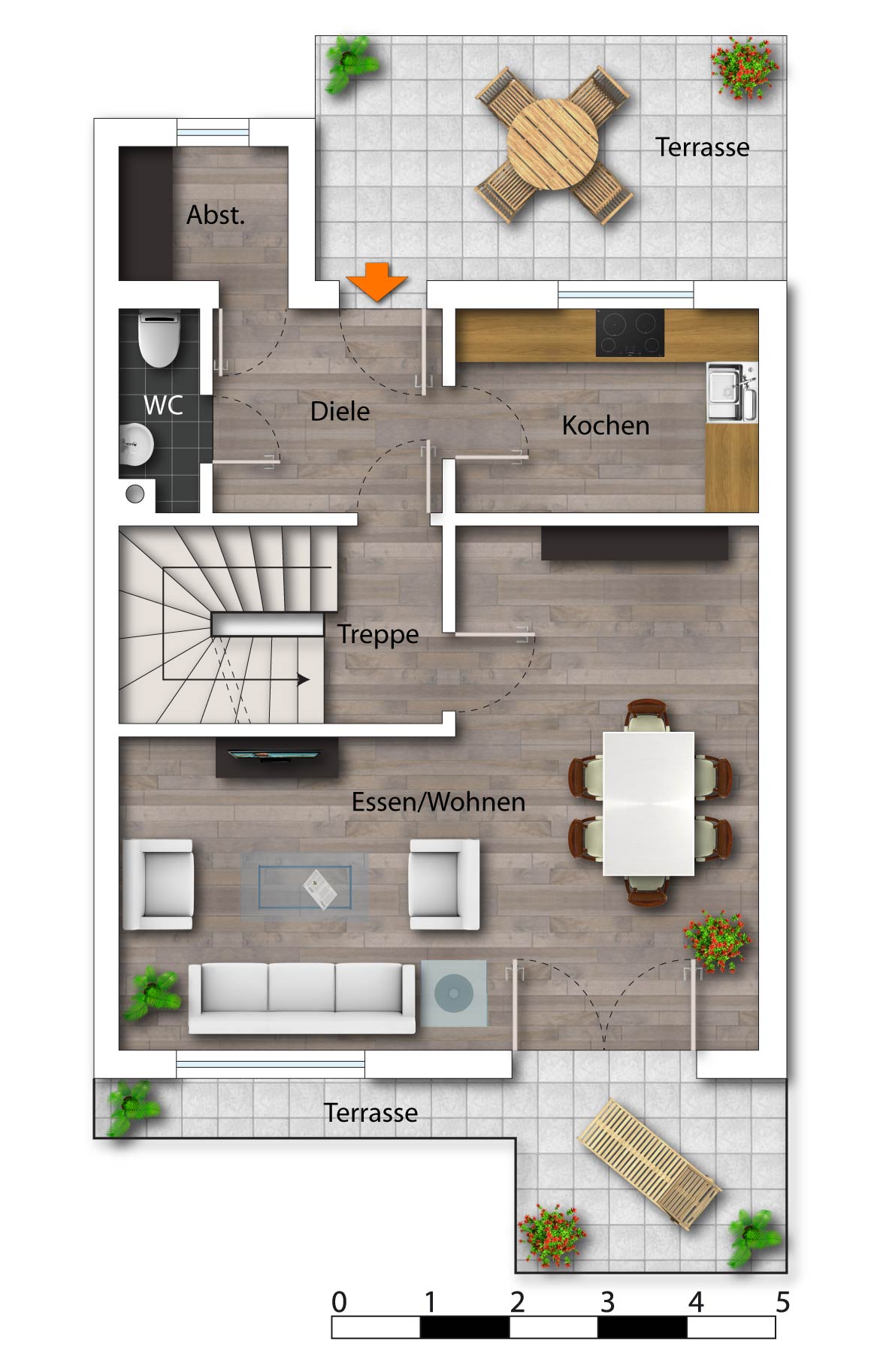 Die Ausstattung (Home Staging) bis auf die Einbauküche ist nicht im Kaufpreis enthalten.