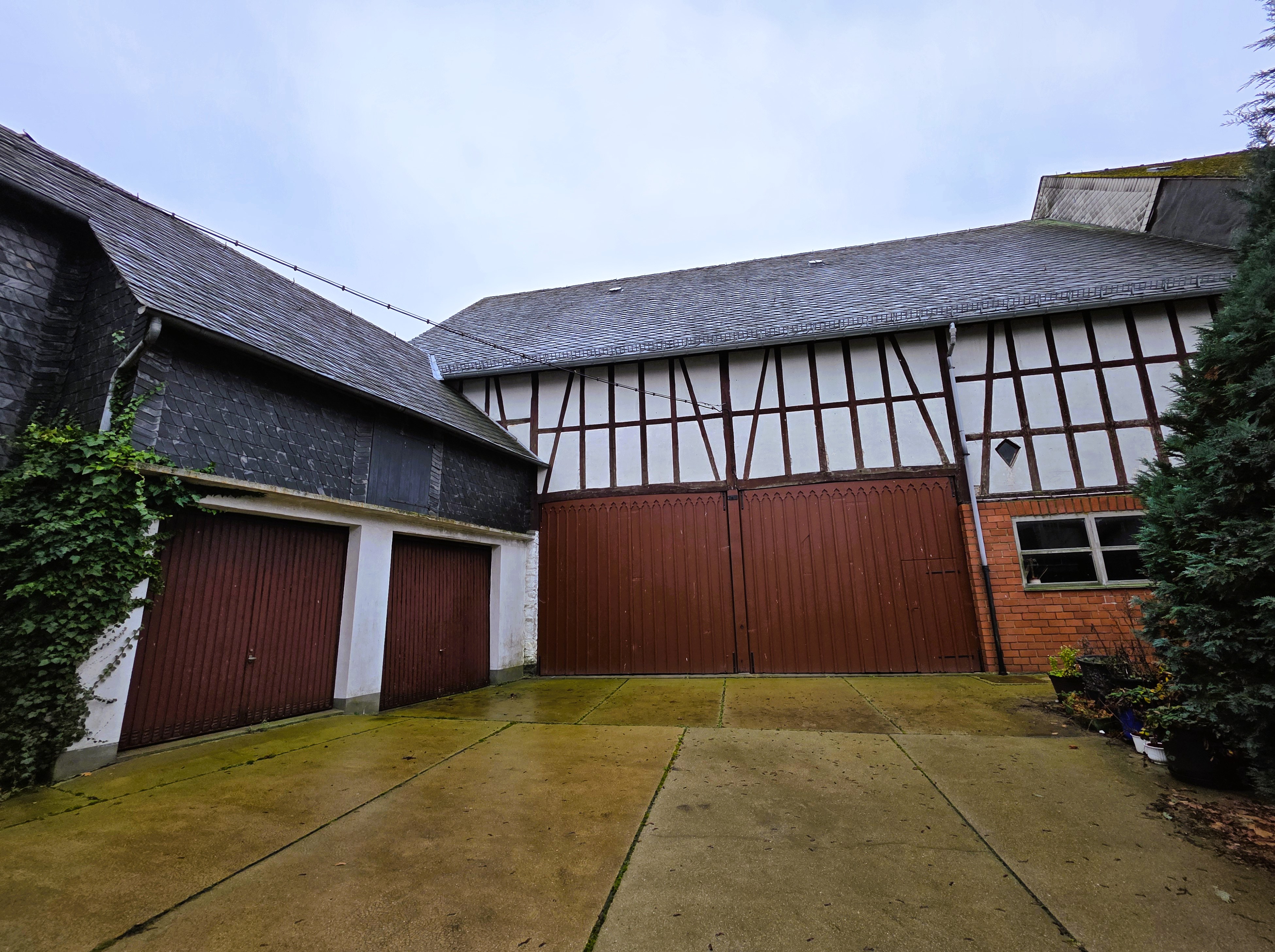 - Nebengebäude: Massivbauweise (Bims), Fachwerkkonstruktion