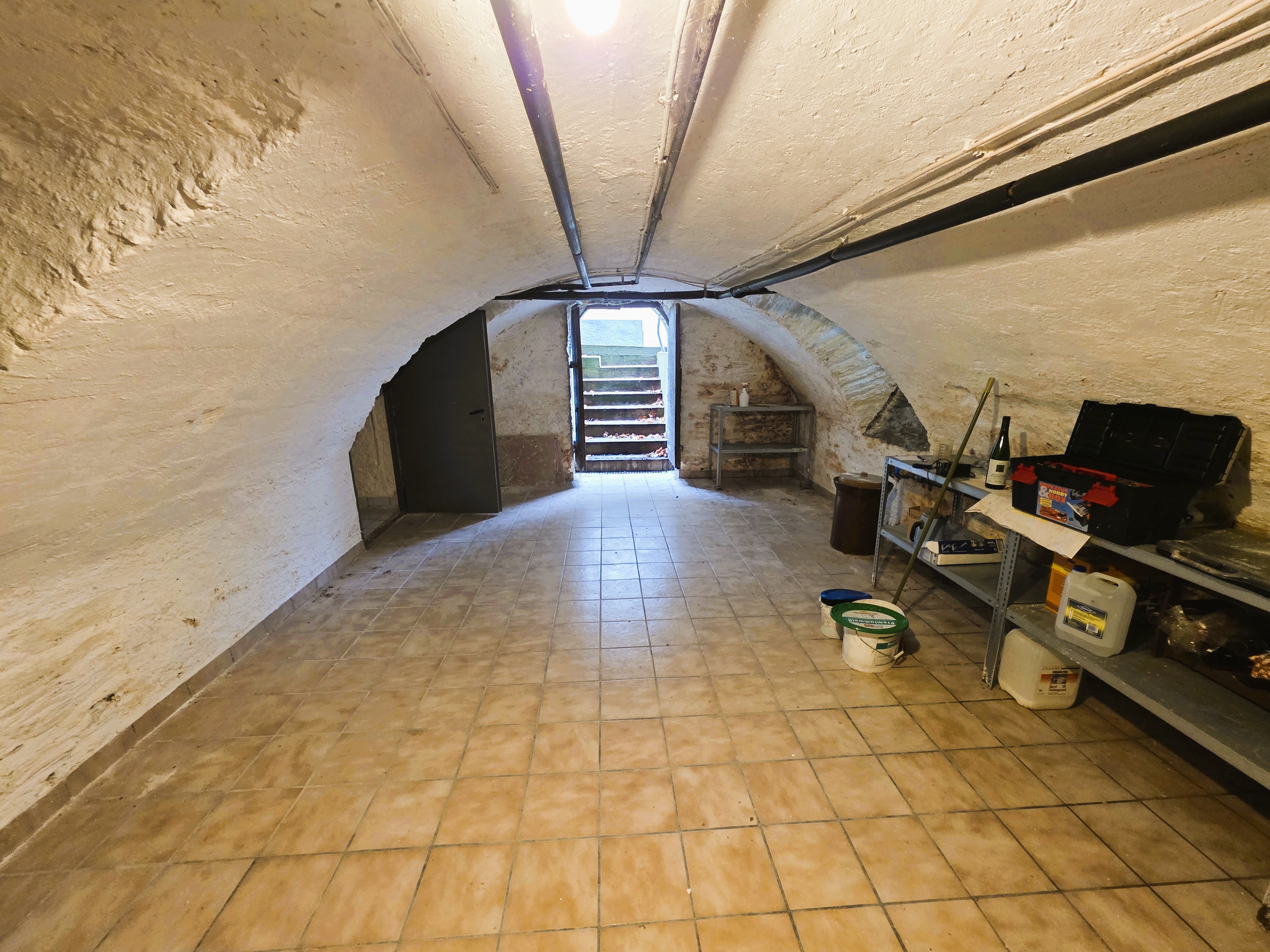 Das teilweise unterkellerte Gebäude, besitzt im Untergeschoss einen Heizungsraum sowie einen Kellerraum mit wunderschönem Kellergewölbe, die sich über eine separate Außentreppe, begehen lassen.