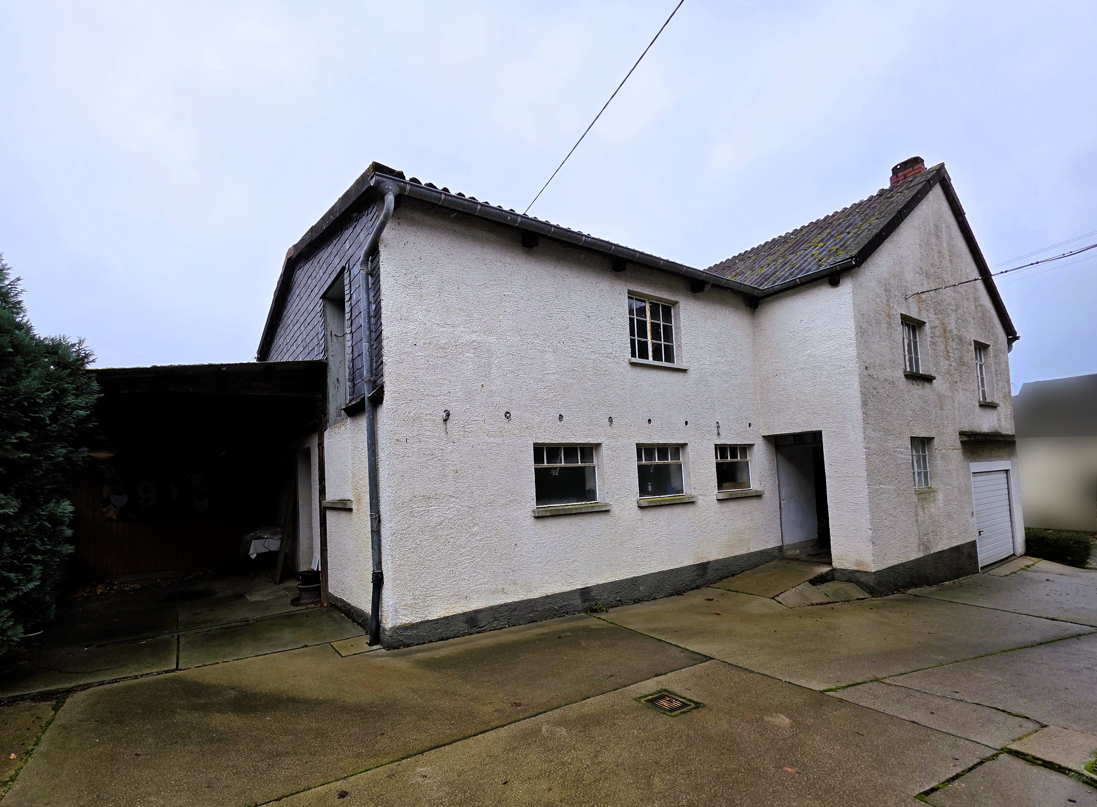 Dacheindeckung: Wohnhaus, Kunstschiefer (Asbestverdacht), Nebengebäude, Naturschiefer/Wellbitumenplatten