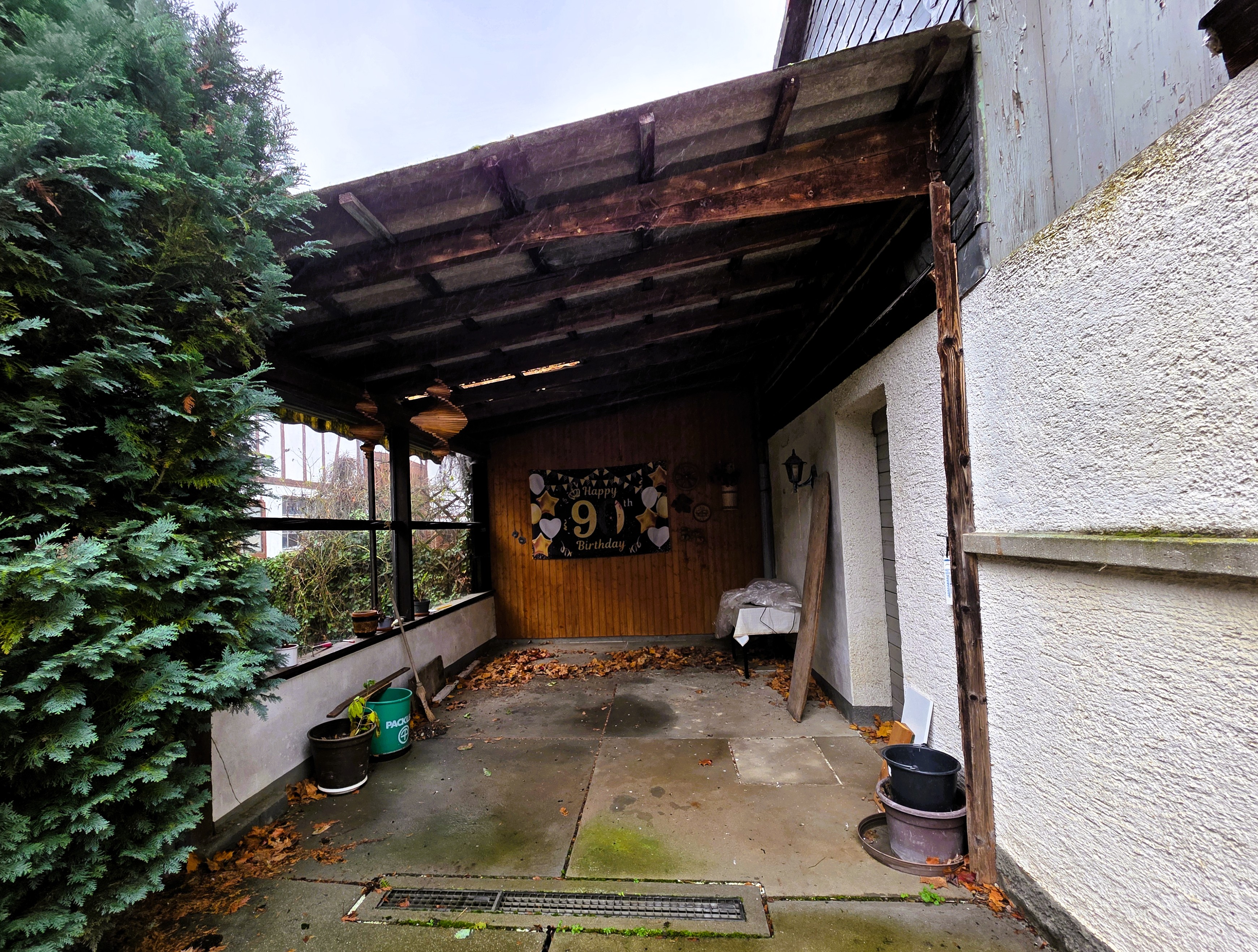 Zwischen Scheune und Nebengebäude befindet sich ein Carport, der in den vergangenen Jahren auch gerne zum Feiern genutzt wurde.